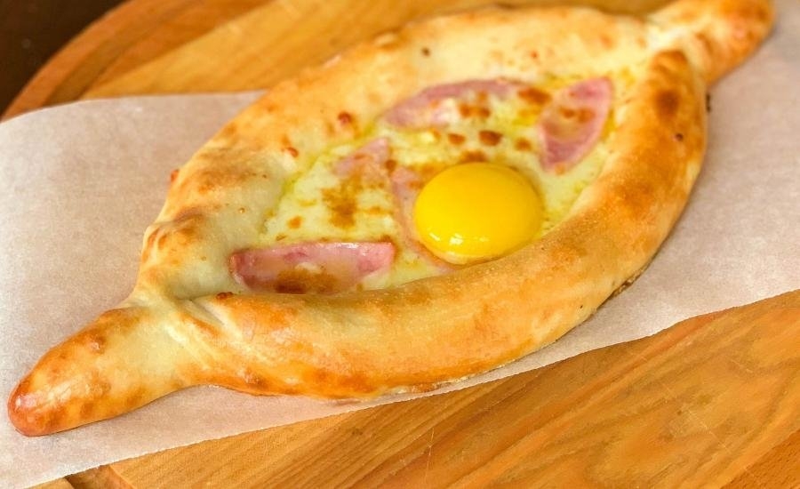 тесто, соус Мути, сыр "Моцарелла", бекон, ветчина, сервелат п/к, корнишоны, сыр "Пармезан", соус фирменный